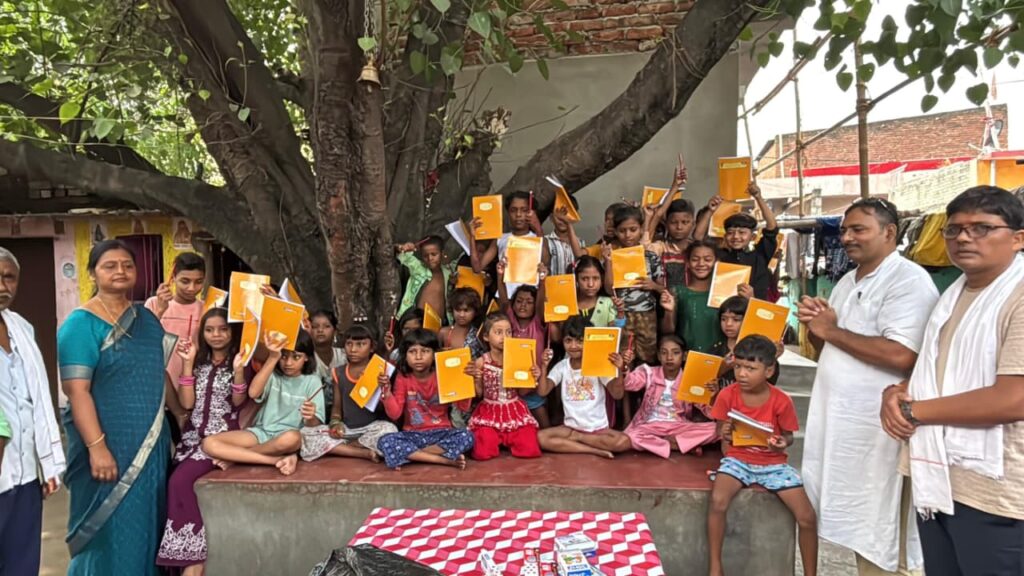 दलित बस्ती में बच्चों को दिए गए शैक्षणिक सामग्री