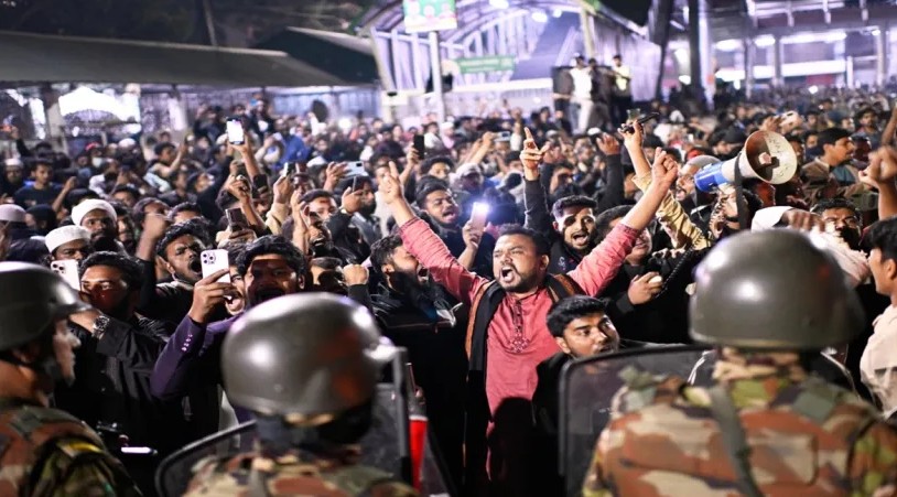 शेख हसीना के खिलाफ विरोध प्रदर्शनों के प्रमुख चेहरों में शामिल उस्मान हादी की मौत के बाद ढाका में जमकर बवाल हुआ। राजधानी में देश के दो बड़े अखबारों—डेली स्टार और प्रोथोम आलो—के कार्यालयों में आग लगा दी गई। हालात काबू से बाहर होते देख सुरक्षा बलों को मोर्चा संभालना पड़ा।